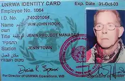 ![]() The identity card of UNRWA's Jenin project manager, Iain John Hook. | |