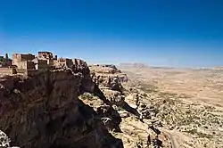 From this base, his forces took Bayt Fa'iz at Jabal Tukhla.[1] This was a fortress dominating the Maswar massif, which fell when Ibn Hawshab managed to suborn part of the garrison.[27] The fortress of Bayt Rayb, located about a kilometre away and protected by sheer cliffs on all sides, was captured on the third attempt.[27] It soon became the residence and main stronghold of Ibn Hawshab, who termed it dār al-hijra, lit. 'place of refuge'.[1][28] The term deliberately echoed the exile of Muhammad and his first followers from Mecca to seek protection in Medina; by implication, those who joined Ibn Hawshab were thus held to leave the corrupt world behind them to recreate a purer faith, emulating the first Muslims.[28]