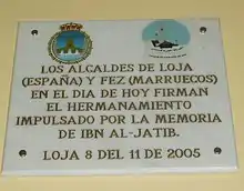 Ibn al-Khatib was born at Loja, near Granada.[6] Shortly after his birth, his father was appointed to a high post at the court of Emir Ismail I in Granada.[6] After his father and older brother were killed in the Battle of Río Salado in 1340, Ibn al-Khatib was hired to work as a secretary for his former teacher Ibn al-Jayyab, vizier to Emir Yusuf I.[6] Following Ibn al-Jayyab's early death from the plague, Ibn al-Khatib became vizier and head of the emiri chancery, serving also in diplomatic roles in the courts of Andalusi and Maghrebi rulers.[6]