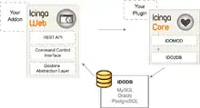 The latter communicates via Icinga's Doctrine abstraction layer, REST and plug-in APIs – that mediate between the external data and internal structures. This bundling of components allows users to distribute Icinga's system for redundant monitoring. It also offers users freedom to customize Icinga to suit their needs.[19]