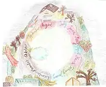 Over the past decade, it has been suggested that the Bouba/Kiki phenomenon is a case of ideasthesia.[16][17][18] Most people will agree that the star-shaped object on the left is named Kiki and the round one on the right Bouba.[19][20] It has been assumed that these associations come from direct connections between visual and auditory cortices.[20] For example, according to that hypothesis, representations of sharp inflections in the star-shaped object would be physically connected to the representations of sharp inflection in the sound of Kiki. However, Gomez et al.[16][21] have shown that Kiki/Bouba associations are much richer as either word and either image is associated semantically to a number of concepts such as white or black color, feminine vs. masculine, cold vs. hot, and others. These sound-shape associations seem to be related through a large overlap between semantic networks of Kiki and star-shape on the one hand, and Bouba and round-shape on the other hand. For example, both Kiki and star-shape are clever, small, thin and nervous. This indicates that behind Kiki-Bouba effect lies a rich semantic network. In other words, our sensory experience is largely determined by the meaning that we assign to stimuli. Food description and wine tasting is another domain in which ideasthetic association between flavor and other modalities such as shape may play an important role.[22] These semantic-like relations play a role in successful marketing; the name of a product should match its other characteristics.[23]