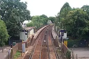 Ifield railway station (pronounced 'Eye-field') serves the neighbourhoods of Ifield and Gossops Green in the West Sussex town of Crawley, England. It is on the Arun Valley Line, 31 miles 66 chains (51.2 km) down the line from London Bridge, measured via Redhill.[2] Train services are provided by Thameslink and Southern.