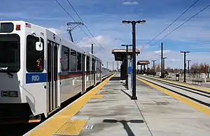Iliff station is a Regional Transportation District (RTD) light rail station in Aurora, Colorado. The station is located alongside Interstate 225 at Iliff Avenue, a little more than one block west of South Blackhawk Street. The station opened on February 24, 2017, and is served by the H and R lines. Iliff station has a 600 space parking structure owned and operated by the City of Aurora. A transit-oriented development project including 424 residences is under construction southeast of the station.[4]