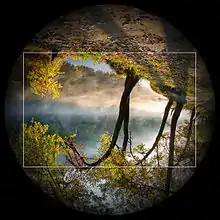 The image circle is the cross section of the cone of light transmitted by a lens or series of lenses onto the image plane. When this light strikes a perpendicular target such as photographic film or a digital camera sensor, it forms a circle of light – the image circle. Various sensor aspect ratios may be used which all fit inside the same image circle, 3:2, 4:3, 16:9, etc.