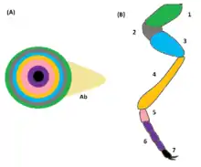 An imaginal disc is one of the parts of a holometabolous insect larva that will become a portion of the outside of the adult insect during the pupal transformation.[1] Contained within the body of the larva, there are pairs of discs that will form, for instance, the wings or legs or antennae or other structures in the adult. The role of the imaginal disc in insect development was first elucidated by Jan Swammerdam.[2]