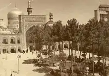 Following the coup in December 1911, Russian artillery shelled revolutionaries who had taken refuge in the holy shrine.[16] The whole complex was greatly damaged in 1911, but it was repaired again after a while by Hussein Mirza Nayyir al-Dawla, Khorasan's governor.