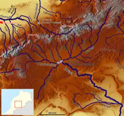 The headwaters of the Draa, with the Assif Imini (middle left)