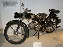 Motorcycle engineer Norbert Riedel recognized the need for a simple and economical light motorcycle during Germany's recovery from the Second World War and began to design one. By the summer of 1947, a prototype frame had been built and tested.[2] The spine frame was made from 40 mm steel tubing,[2] as were the steering head,[3] the single-sided front fork, and the single-sided swingarm.[2] The wheels were interchangeable, and were mounted from the left on stub axles attached to the suspension on the right.[2][4]
