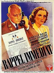 Immediate Call (French: Rappel immédiat) is a 1939 French comedy drama film directed by Léon Mathot and starring Mireille Balin, Roger Duchesne and Bernard Lancret.[1]