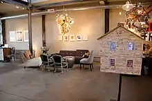 The organization has offices in the Crane Arts building, a warehouse-turned-art space originally built in 1906, and located at 1400 N. American Street in the Kensington neighborhood of Philadelphia.[12] Year-round member exhibitions are held in neighborhoods throughout the city and the surrounding region. Regular InLiquid exhibition spaces include the Painted Bride Art Center in Old City, International House Philadelphia in University City, and the Sundance TV offices in New York.[13] Past partnerships have included Gallery 543 at URBN Headquarters, the Leonard Pearlstein Gallery at Drexel University, project space de, Feast Your Eye’s Salon at Front+Palmer, Marriott Courtyard at the Philadelphia Naval Shipyard, Carpenter Square, minima, Bryn Mawr Film Institute, West Elm], the digital cube at the Kimmel Center for the Performing Arts, the media wall at Commerce Square, Spruce Street Harbor Park, James Oliver Gallery, Select Fair Miami, Select Fair New York, River's Edge Gallery at Bridgeton House, Engagement Studios, bahdeebahdu, and Old City Publishing.[14]