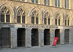 The In Flanders Fields Museum is a museum in Ypres (Ieper), Belgium, dedicated to the study of the First World War. It occupies the second floor of the Cloth Hall (Lakenhalle) on the market square in the city centre. The building was largely destroyed by artillery during the war, but was afterwards reconstructed. In 1998 the original Ypres Salient Memorial Museum was refurbished and renamed In Flanders Fields Museum after the famous poem by Canadian John McCrae. Following a period of closure, the museum reopened on 11 June 2012. The curator, Piet Chielens, is a World War I historian.