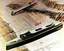 Shadowgraph of an India-class submarine with two DSRVs