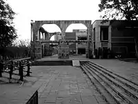 The institute's buildings are designed by Anant Raje. The architecture of the campus is inspired by the historical town of Mandu.