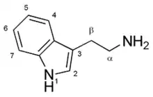 Indolamines are a family of neurotransmitters that share a common molecular structure (namely, indolamine). Indolamines are a classification of monoamine neurotransmitter, along with catecholamines and ethylamine derivatives. A common example of an indolamine is the tryptophan derivative serotonin, a neurotransmitter involved in mood and sleep.[1] Another example of an indolamine is melatonin.