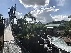 On April 13, 2017, SeaWorld Orlando announced "Infinity Falls" to open in 2018, with park officials comparing the ride to class IV river rapids experience.[3][4][5] On August 10, 2017, SeaWorld Orlando filed a notice of commencement and began ground breaking work.[6] Permits that were found on October 12, 2017 in Orange County, Florida showed details of construction, with PCL Construction looking over the work site.[7] The ride raft was unveiled at International Association of Amusement Parks and Attractions (IAAPA) Attraction Exposition 2017.[8]