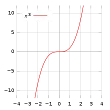 Plot of y = x3 with an inflection point at (0,0), which is also a stationary point.