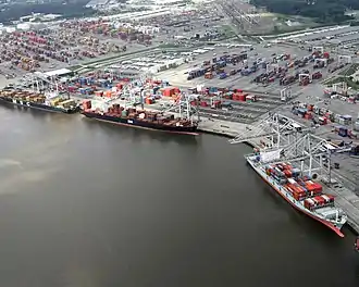 Charleston Harbor, South Carolina, regularly hosts ships traveling through the recently expanded Panama Canal. South Carolina is also home to many manufacturing plants belonging to various multinational corporations, such as the automaker BMW, the tire maker Michelin, and many others.[78] Works to deepen it to 52 feet (15.8 m) has been ongoing since 2011 but had never been on a federal budget proposed by the President till 2018, when a new cost-benefit analysis conducted by the U.S. Army Corps of Engineers made it suitable for consideration. President Trump allocated $138 million to the project in his budget in 2019. Dredging started in 2018, and the State Ports Authority, which operates Charleston Harbor, said it planned to complete the project by 2021, in time for a new container terminal to open.[79] Upon completion, it will be the deepest shipping channel in the East Coast of the United States.[78]