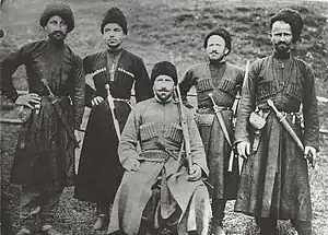 During the Caucasian War, Ingush were considered "half-conquered", and as A. L. Zisserman puts it, the Ingush also managee to participate on the side of Imam Shamil.[93][94] The 1840–1850s are considered the peak of Caucasian Imamate, during which, number of Ingush societies (Vilayet Kalay), some Tsorin and Galgaï auls were part of it.[95][96]