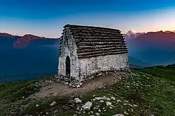 In the 4th-3rd millennium BC in the North Caucasus, archaeological cultures of the early Bronze Age are spreading: Maykop and Kuro-Araxes. The territory of Ingushetia is located in the zone of their intersection and part of the early Bronze Age monuments found here has a characteristic syncretic appearance (for example, the Lugovoe settlement).[47] With these cultures, several cultures are genetically linked, which were formed in the subsequent Middle Bronze Age and received in science the general name "North Caucasian cultural and historical community".[48][49] In turn, on the basis of the cultures of the North Caucasian cultural and historical community, an ancient culture of the North Caucasian autochthonous peoples developed – the Koban culture, the chronological framework of which is usually determined by the XII-IV centuries BC.[lower-alpha 1] It is with the tribes of the Koban culture that it is customary to link the ethnogenesis of the Proto-Ingush ethnic groups. In the written Georgian sources describing the events of this period, the ancestors of the Ingush (tribes of the Koban culture) are known under the ethnonym "Caucasians" and "Dzurdzuks" (Durdzuks), in ancient ones – under the name "Makhli".[47] In the second half of the 1st millennium BC, Koban tribes created a large political union of tribes, known from ancient sources under the name Malkh (Makhli, Makhelonia), according to Georgian sources – Dzurdzuketia.[51] The Dzurdzuks controlled the main Caucasian passage, the Darial Gorge, and had close political ties with the ancient Georgian state.[52] According to Leonti Mroveli, the first king of Georgia, Pharnavaz, was married to a woman “from the tribe of Dzurdzuks, descendants of the Caucasus” and they had a son, Saurmag[53][54] (Ingush: Сармак, romanized: Sarmak, lit. "dragon"). He ascended the Georgian throne after the death of his father, and upon learning that the Georgian eristavs wanted to kill him, he and his mother took refuge with his maternal uncles in Dzurdzuketia.[55] According to the ancient writer Lukian, the name of one of the rulers of the political association of the ancient Kobans is known – Adirmakh, which the Abkhaz researcher Gumba G.D. etymologizes with the help of the Ingush language as "the owner of the power of the sun".[56] At the beginning of the II century BC as a result of the military invasion of the North Caucasus by the Seleucid king Antiochus III, the political union of the Koban tribes was defeated.[57] As a result of its collapse, common Koban names cease to be used in the sources, and later, in the 1st century BC – 1st century AD, the descendants of the Kobans are known in the sources under the names of individual tribal groups: "Khamekits", "Serbs", "Dvals", "Sanars/Tsanars", "Mashakhs/Mashakhs", "Isadiks", and others.[58]