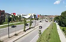 On December 2, 2014, the Inner Loop's eastern side was closed permanently to start the $21 million Inner Loop East project, which transformed the freeway into an at-grade street.[3] The project was completed on November 22, 2017, at which time the Inner Loop ceased to exist as a complete loop, terminating instead at a signalized intersection with East Main Street and University Avenue.[15] In a 2021 editorial, The New York Times praised the project as an achievement in removing urban highways to improve American cities, noting the project's creation of space for new development.[16]