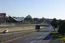 One proposal in 2005, which was considered for federal aid, would have reduced the number of lanes on the loop between Clinton Avenue and Main Street to make room for additional shops and businesses on the streets adjacent to the Inner Loop.[10] Another plan, developed in 2009, called for the portion of the Loop from Main Street to Monroe Avenue (NY 31) to be completely filled in and replaced with an at-grade boulevard. The $20 million project was approved by a city council committee in September 2011;[2][11] however, a $15 million federal grant application was denied later in the year. Then, in 2012, Rochester Mayor Thomas Richards spent $2 million on further design work that strengthened the city's request for federal funding.[12] On August 30, 2013, the city of Rochester was given a TIGER grant worth $18 million (2013 USD) to fill in the Inner Loop between Monroe Avenue and Charlotte Street. The new project also gave money to reconnect the neighborhoods separated by the Inner Loop, Park Avenue and South Wedge.[13]