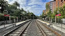 John Holland Group was announced as the successful tenderer for the infrastructure works on 31 May 2012, covering the design and construction of the nine stops, bridge works, signalling and power supply.[13][14] The extension opened on 27 March 2014.[15]