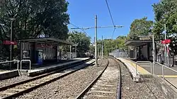 Work to upgrade the track and remove the overhead wiring began in August 2010.[10] The project received planning approval in February 2011.[11] The extension was originally scheduled to open in 2012, but in September 2011 the newly elected O'Farrell Government announced that it would not open until 2014, and that the cost had risen from $120 million to $176 million. The Greenway walking and cycling path which was to run alongside much of the route was deferred. The new government blamed hasty planning by their predecessor for the delay and cost overruns, and the lack of an active transport masterplan for the deferral of the Greenway.[12]