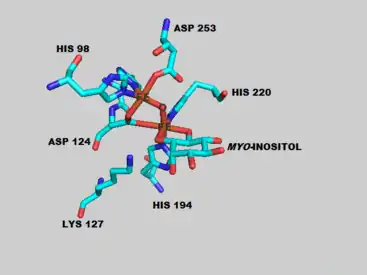 - Charalampous FC (February 1959). "Biochemical studies on inositol. V. Purification and properties of the enzyme that cleaves inositol to D-glucuronic acid". The Journal of Biological Chemistry. 234 (2): 220–7. doi:10.1016/S0021-9258(18)70276-7. PMID 13630882.