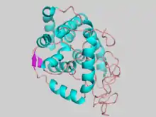 ![]() Structure of the mouse myo-inositol oxygenase monomer, generated from 2HUO, colored by secondary structure element. | |||||||
