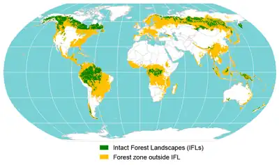 The distinction between intact and non-intact forest landscapes can be used to account for losses of carbon from forest degradation, as proposed by Mollicone, et al.[13] The global IFL map[14] provides a geographically explicit baseline with several advantages: