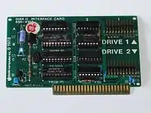 The floppy drive controller board, the "Disk II interface,"[2] was built with 8 ICs, one of which is the PROM, containing tables for the encoder and decoder, the state machine, and some code.