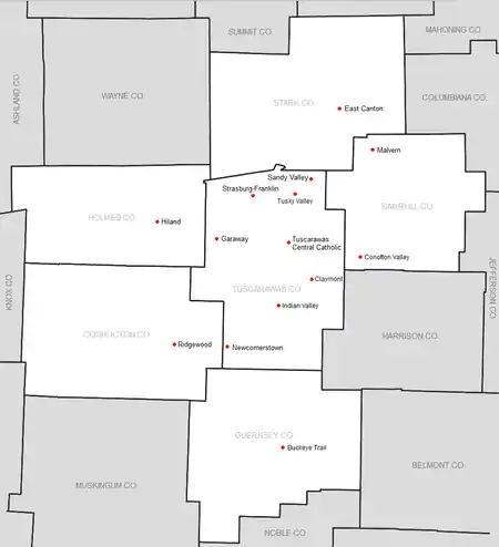 The conference underwent a major change at the start of the 2017–18 season as the league added five new member schools including Indian Valley, Claymont, Tuscarawas Valley, Buckeye Trail and Conotton Valley.