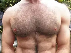 The intermammary cleft or intermammary sulcus or sulcus intermammarius is a surface feature of males and females that marks the division of the two breasts with the sternum (breastbone) in the middle.[1][2][3][4][5] The International Federation of Associations of Anatomists (IFAA) uses the terms "sulcus intermammarius" or "intermammary cleft" when referring to the area between the breasts.[6][7][8]