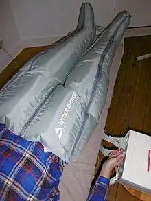 Intermittent pneumatic compression is a therapeutic technique used in medical devices that include an air pump and inflatable auxiliary sleeves, gloves or boots in a system designed to improve venous circulation in the limbs of patients who have edema or the risk of deep vein thrombosis (DVT), pulmonary embolism (PE), or the combination of DVT and PE which is venous thrombeombolism (VTE).[1]