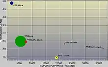 The data analysis section of IFs represents a collection of over 2,000 data series from all major international data gatherers. It is constantly updated with new data series. This data forms the foundation of the model structure. Users can analyze historic data cross-sectionally, longitudinally or on a world map. Using cross-sectional analysis, users can select a variables and plot this against up to 5 independent variables. It is then possible to animate the map to see how the cross-sectional relationship changes across the 40+ years of data in the database. Longitudinally, users can plot the relationship between a dependent variable and time, from 1960 (for most data series) through the most recent data year available. A world map allows users to display data from any of these series using GIS options.