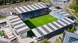 Intility Arena,[2] also referred to as Vålerenga Stadion, is an association football stadium in Oslo, Norway. The stadium is the home stadium for the Vålerenga Fotball, currently playing in the Eliteserien, and it has a seating capacity of 16,555 people.[1]