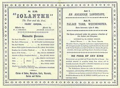 - Iolanthe, D'Oyly Carte Opera Company, retrieved 26 July 2015