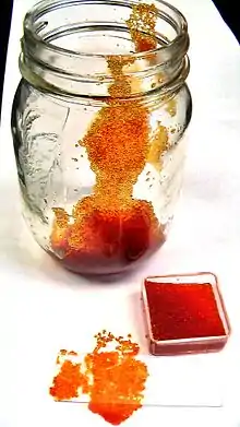 An ion-exchange resin or ion-exchange polymer is a resin or polymer that acts as a medium for ion exchange. It is an insoluble matrix (or support structure) normally in the form of small (0.25–1.43 mm radius) microbeads, usually white or yellowish, fabricated from an organic polymer substrate. The beads are typically porous, providing a large surface area on and inside them where the trapping of ions occurs along with the accompanying release of other ions, and thus the process is called ion exchange. There are multiple types of ion-exchange resin. Most commercial resins are made of polystyrene sulfonate.[1]