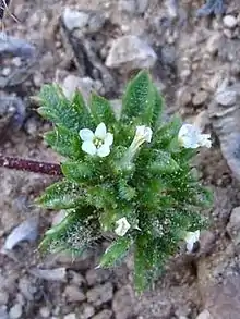 Ipomopsis polycladon is a species of flowering plant in the phlox family known by the common name manybranched ipomopsis. It is native to much of the western United States and northern Mexico, where it grows in sandy soils such as those of the deserts. This is an annual herb producing a number of horizontal red stems extending outward from the short central stem. Leaves appear at the ends and axils of branches. Each leaf is multilobed, and mostly green but often red-tipped, and less than 2 centimeters long. Stems and leaves are covered with woolly glandular hairs. The long stem branches bear inflorescences of leaflike bracts which are green with sharp-pointed red tips, and tiny white flowers a few millimeters across.