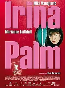 Irina Palm is a 2007 tragicomedy film directed by Sam Garbarski and starring Marianne Faithfull and Miki Manojlović. It is a co-production of five countries (Belgium, Luxembourg, Great Britain, Germany and France). The film premiered at the 2007 Berlin International Film Festival. The film has earned over US $10 million worldwide.