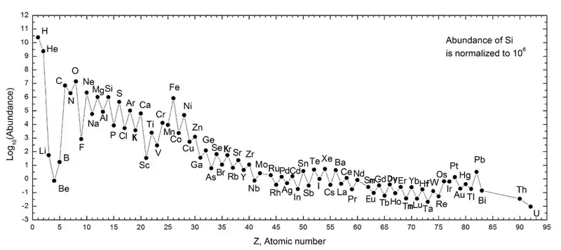 The iron group in astrophysics is the group of elements from chromium to nickel, which are substantially more abundant in the universe than those that come after them – or immediately before them – in order of atomic number.[10] The study of the abundances of iron group elements relative to other elements in stars and supernovae allows the refinement of models of stellar evolution.