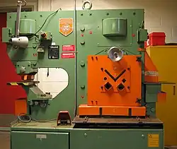 Ironworker is a class of machine that can shear, notch, and punch holes in steel plate and profiles. The name is now used to refer to the whole class of machines (made by at least a dozen brands, including Edwards). If there ever was a brand name, it has now become a genericized trademark. Ironworkers generate force using mechanical advantage or hydraulic systems.