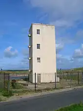 Irvine Harbour is home to a unique and distinctive category 'B' structure which displayed the tide level to ships entering the harbour until the 1970s. It was opened in 1906 and was designed by Martin Boyd, the harbourmaster at that time. The Automatic tide signalling apparatus indicated the tide's state in two ways depending on the time of day. During daylight, the level was marked with a ball and pulley system attached to the mast. At night, a number of lamps marked the tidal level. Unfortunately the building has fallen into disrepair and the mast that once stood atop it dismantled. There have been various plans to try to refurbish this unusual and unique building which so far, have come to nothing other than it has been made wind and watertight with a roof constructed.