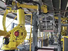 The new design improved, among other things, the discharge area of the stripper. This had been a problem area for the carousel stripping machines, in which copper released from the cathode plate fell into an envelope and was then transferred to a material handling device.[13] Copper that misbehaved and failed to transfer often required manual intervention.[13] The new robot discharge system eliminated the free falling of the copper and physically transferred the released copper to the discharge location.[13]