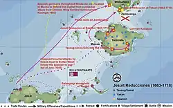 By then, Badar ud-Din, Sultan of Sulu, who was keenly interested in developing commercial ties with Manila and China, approached the Spanish with a proposal of peace. According to the agreement they arrived at in 1726, the Spanish and Sulu were permitted to trade freely with each other and the Island of Basilan was ceded to Spain. However, in a series of raids on the islands of Visayas, where the Spanish themselves get manpower and resources for Zamboanga, angry subjects of the Sultan broke the treaty which resulted in the renewal of large-scale hostilities by 1730.[6] In 1731, General Ignacio Iriberri lead a force of 1000 to Jolo and captured it after a lengthy siege. But the Spaniards left after a few days.