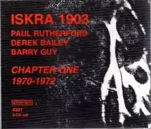 Iskra 1903 is the debut album by the group of the same name, featuring trombonist Paul Rutherford, guitarist Derek Bailey and bassist Barry Guy which was recorded at the Institute of Contemporary Arts in 1970 and in a studio in 1972 and first released as a double album on the Incus label then as a triple CD box set entitled Chapter One 1970-1972 on Emanem in 2000 with additional material.[1][2][3]