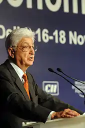 Muslims in India have a much higher total fertility rate (TFR) compared to that of other religious communities in the country.[107] Because of higher birthrates the percentage of Muslims in India has risen from about 9.8% in 1951 to 14.2% by 2011.[108] However, since 1991, the largest decline in fertility rates among all religious groups in India has occurred among Muslims.[109] The Sachar Committee Report shows that the Muslim Population Growth has slowed down and will be on par with national averages.[110] The Sachar Committee Report estimated that the Muslim proportion will stabilise at between 17% and 21% of the Indian population by 2100.[111] Pew Research Center have projected that India will have 310 million Muslims by 2050, out of total 1.668 billion people, thus constituting 18.4% of the country's population.[112][113][114][115][116][117][118] United Nations have projected India's future population. It will rise to 170.53 crore by 2050, and then it will decline to 165.97 crore by 2100 year respectively. Muslim population will rise to minimum 282.14 million (forming 17% of the country's population) to maximum 348.53 million (forming 21% of the country's population) by 2100.[119][120][121][122][123][124]