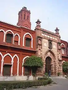 Under the Delhi Sultanate, there was a synthesis of Indian civilization with that of Islamic civilization, and the integration of the Indian subcontinent with a growing world system and wider international networks spanning large parts of Afro-Eurasia, which had a significant impact on Indian culture and society.[56] The time period of their rule included the earliest forms of Indo-Islamic architecture,[57][58] increased growth rates in India's population and economy,[59] and the emergence of the Hindustani language.[60] The Delhi Sultanate was also responsible for repelling the Mongol Empire's potentially devastating invasions of India in the 13th and 14th centuries.[61] The period coincided with a greater use of mechanical technology in the Indian subcontinent. From the 13th century onwards, India began widely adopting mechanical technologies from the Islamic world, including water-raising wheels with gears and pulleys, machines with cams and cranks,[62] papermaking technology,[63] and the spinning wheel.[64]