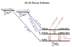| 26mAl | 228.306(13) keV | 6.3460(8) s | β+ | 26Mg | 0+ | ||||||||||||||