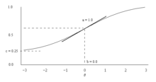 With rescaling of the ability parameter, it is possible to make the 2PL logistic model closely approximate the cumulative normal ogive.[11] Typically, the 2PL logistic and normal-ogive IRFs differ in probability by no more than 0.01 across the range of the function. The difference is greatest in the distribution tails, however, which tend to have more influence on results.